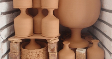 Dopo aver perso la giusta percentuale di acqua l’argilla essiccata diventa rigida ma resta estremamente fragile. Questo stadio subisce una prima cottura in un forno rivestito con lana di vetro e materiale refrattario, diventando biscottato. La temperatura del forno deve essere compresa tra i 950 °C e i 970 °C.