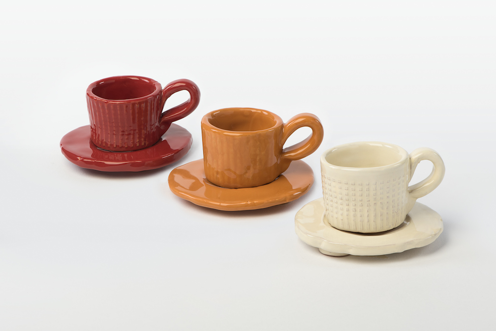 Collezione nata utilizzando i fuscelli della ricotta per ricreare contenitori, tazze e tazzine da caffè. Vendibili separatamente o con colori combinati..
